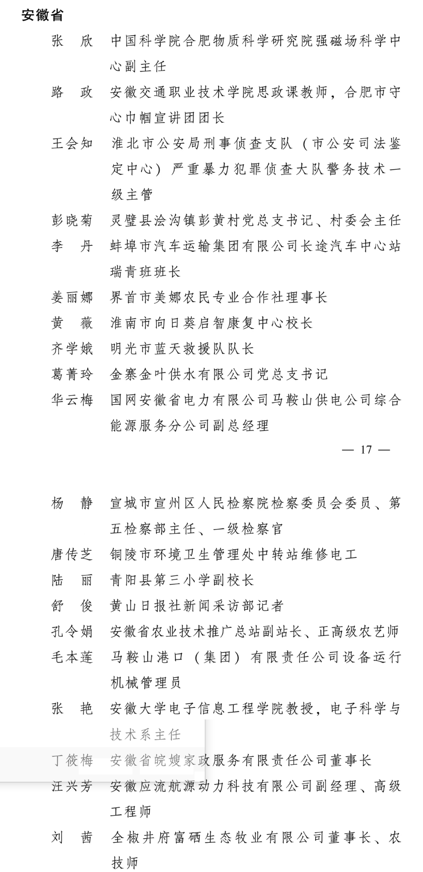 全国三八红旗手名单(安徽部分)