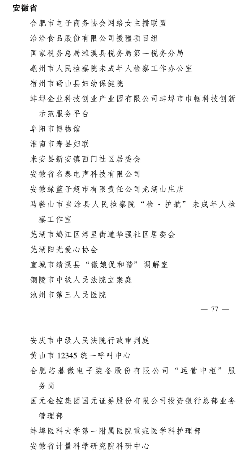 全国巾帼文明岗名单(安徽部分)