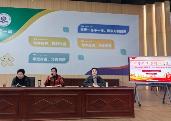 校党总支副书记、副校长邢媛媛带领全体教师学习教育部2026年新春第一会的会议精神,强调“健康第一”理念,并围绕家校沟通、教师专业成长等方面提出具体要求。她指出,教育工作者要坚守育人初心,坚持科学有效的家校沟通策略,构建和谐共育环境;要严格落实新教材培训,不断提升专业素养,以适应教育变革的新要求。邢媛媛还高度赞扬了寒假期间少先队开展的实践活动,并特别表扬了11位参与保障央视春晚合肥分会场工作的教职工,肯定他们以实际行动诠释了责任与担当,展现了恒盛教师队伍的良好风貌。她强调,学校将始终以办好人民满意的教育为目标,在时代变迁中保持教育定力。