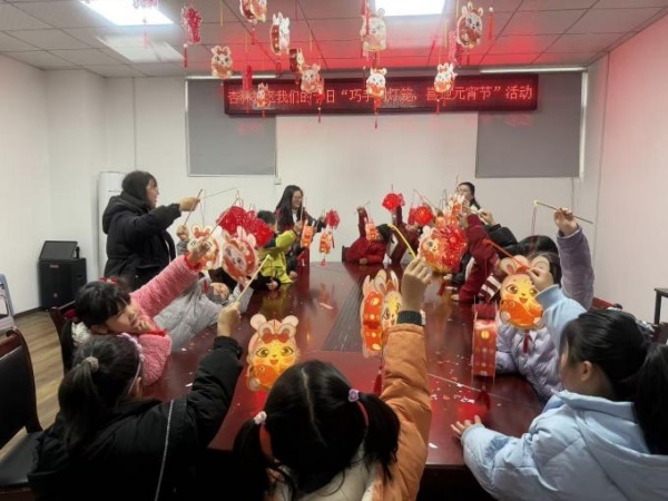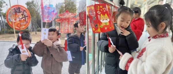 孩子们在老师带领下走进附近社区,与社区居民一起动手制作灯笼。剪裁、折叠、粘贴……大手帮小手,小手忙不停,一盏盏充满童趣的灯笼在大家合作中逐渐成形,红色的灯笼映红了孩子们的笑脸,也点亮了社区的节日氛围,现场欢声笑语,其乐融融,节日的喜悦在指尖流淌,更在心间传递。