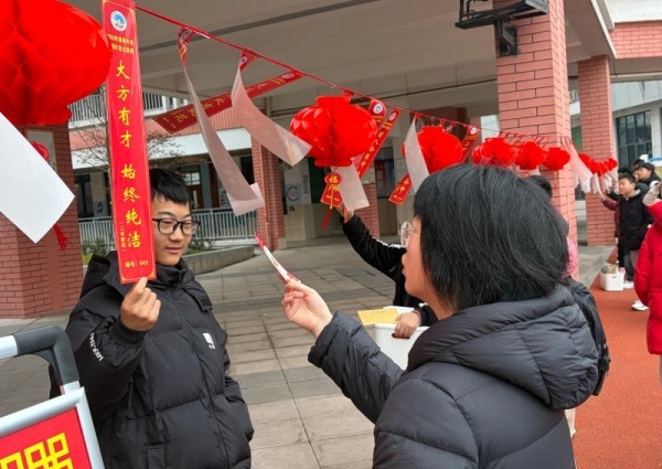 活动现场,师生们热情高涨,纷纷驻足凝视、凝神思索。有的同学独自钻研,时而蹙眉思考,时而豁然开朗;有的三两成群,互相讨论、集思广益,在思维碰撞中寻找谜底;还有老师主动加入,与学生们一同竞猜,现场欢声笑语不断。“这个字谜我知道!”“这个典故我学过!”猜对谜底的学生们兴奋地前往兑奖处抽取奖品,让大家在收获知识的同时,也收获了满满的好运与喜悦。