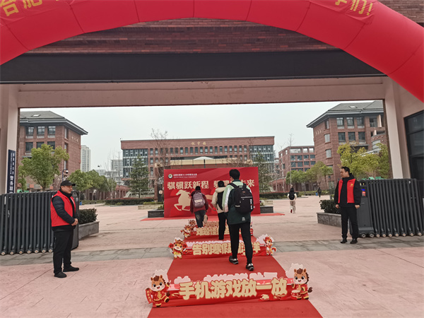 开学当日,党员志愿者们按时到岗,迅速奔赴学校南、北校门以及校园主干道、教学楼、宿舍楼、停车点等关键位置,以饱满的热情和昂扬的姿态迎接学生返校。在校门出入口,志愿者们分工明确、相互配合:有的引导学生有序入校;有的化身“暖心搬运工”,主动接过学生手中的被褥、行李箱等大件物品,一次次往返于校门与宿舍之间;有的耐心提醒骑乘家长佩戴头盔、注意安全。志愿者们还主动引导学生调整状态,以良好的精神面貌投入新学期的学习,用贴心服务为“开学第一课”保驾护航。
