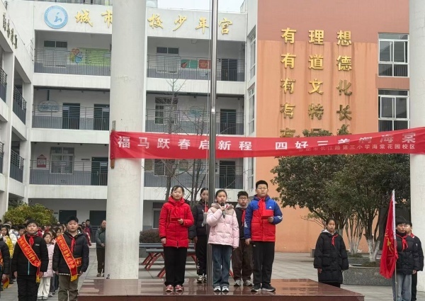 春风送暖,万物复苏。3月5日上午,合肥市长江路第三小学海棠花园校区全体师生齐聚操场,隆重举行以“福马跃春启新程 四好三美化海棠”为主题的春季开学典礼。本次活动深入落实合肥市庐阳区教体局“四好三美化”学生文明素养培育专项行动,激励全校师生以龙马精神、崭新面貌迎接新学期。