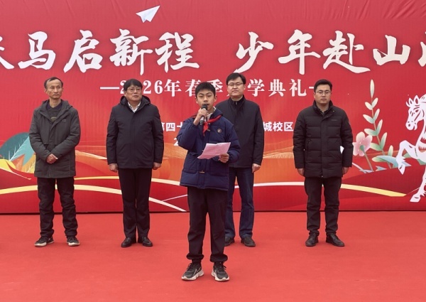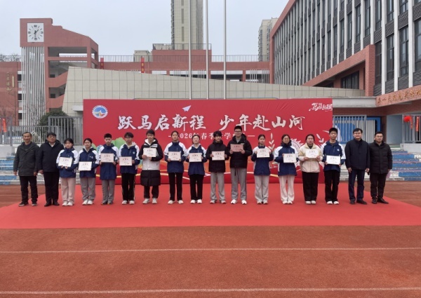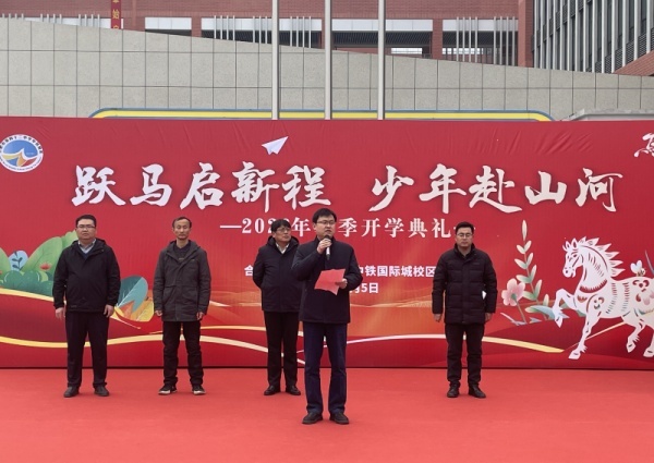惊蛰至,万物苏,春风浩荡启新程;丙午岁,马蹄疾,少年意气赴山河。3月5日,合肥市第四十二中学中铁国际城校区全体师生齐聚操场,举行以“跃马启新程 少年赴山河”为主题的2026春季开学典礼。校领导武江义、高峰、葛金灿、张高出席,开学典礼由七(3)班马郡楚、八(1)班李谷一主持。