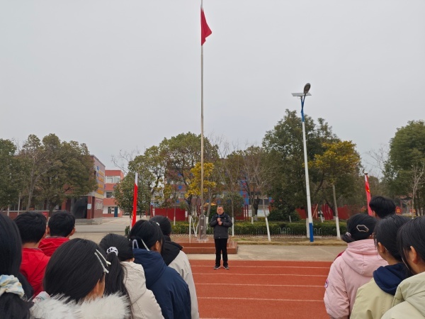 升旗仪式后,校党支部副书记蒋华进在国旗下发表讲话,开展专题宣讲。他围绕“青山学校师生每日五问”——“我是谁?我在哪里?我来做什么?我的目标是什么?我今天努力了吗?”进行了全面阐释与思想动员。