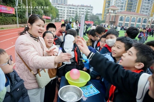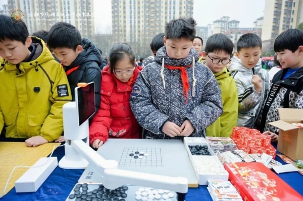展演结束后,观摩体验活动正式开启,校园瞬间变身欢乐的海洋。各个社团精心布置展示,吸引了同学们踊跃参与。瞧,象棋与围棋社团,上演了一场人机大战,孩子们争相与人工智能机器阿发蛋进行对弈。趣味科学社团里,一场趣味科学实验正在上演,引来同学们阵阵惊叹。活动现场师生互动连连,欢声笑语交织成校园里最动听的新春序曲。
