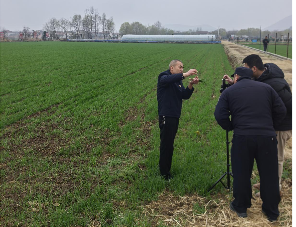 专家问诊,开出田管“对症方”。直播中,夏主任结合近期天气情况和苗情特点,针对网友提出的病虫害防治、弱苗追肥等问题进行详细解答。他指着手中的麦苗解释道:“这3场春雨下得好,加上近日都追了返青肥,确保小麦起身拔节有充足的水分和养分,为穗大粒多打下基础;但仍有少部分晚播田块苗小、分蘖少,要抓住当前有利时机喷施叶面肥或趁墒追施肥料,促进弱苗转化升级”。通过实时互动和现场答疑,让屏幕前和现场的农民群众听得懂、学得会、用得上,真正实现“对症开方、精准服务”。