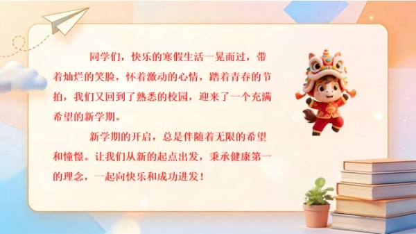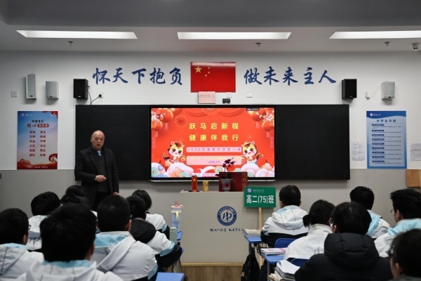 春风浩荡启新篇,博雅奋进正当时。为贯彻落实教育部和省市教育部门新春第一会的相关要求,营造浓厚的“健康第一”的开学氛围,引导同学们以健康身心、昂扬姿态迈入高二下学期,2026年3月5日下午第四节课,合肥一中首届物理博雅班班主任郑汉洲老师在班级为同学们上了一节以“跃马启新程 健康伴我行”为主题的开学第一课,将身心健康与学业成长紧密结合,为新学期筑牢坚实根基。