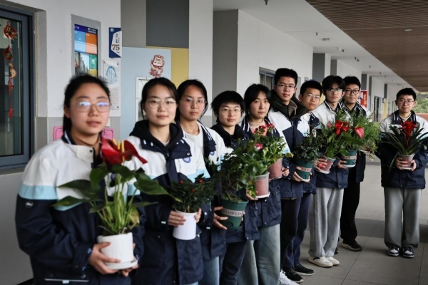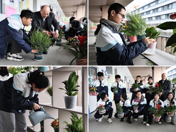 同学们满怀兴奋和感激之情,分组为班级的花卉进行移栽、修剪和浇水,每个小组都进行了合影留念,为绿色校园,生态校园树立了榜样。