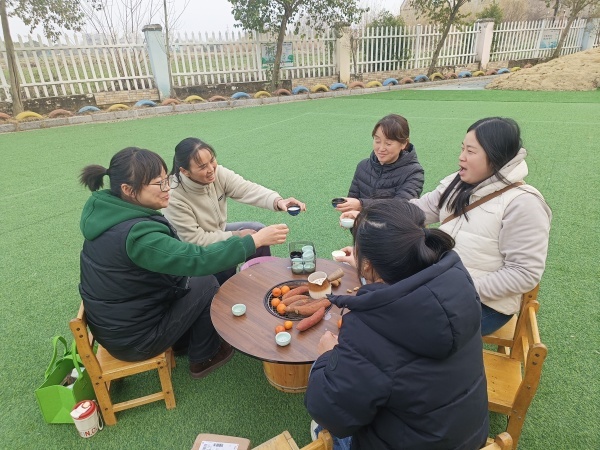 活动现场暖意融融、氛围感十足。炭火轻燃,茶香袅袅,幼儿园精心准备了清茶、时令水果、精致茶点与特色烤物,大家围炉而坐,慢煮时光、细品茶香。在悠然闲适的氛围中,老师们暂别忙碌的工作,闲话家常、畅谈教育心得、分享生活趣事,欢声笑语萦绕其间。