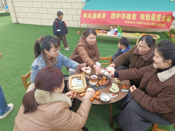 阳春三月,春风送暖。在第116个“三八”国际妇女节来临之际,为丰富女教职工精神文化生活,舒缓工作压力,传递工会暖心关怀,来安县水口镇中心幼儿园工会精心组织“春风遇暖茶 围炉享暖意”主题活动,全体女教职工欢聚一堂,共赴一场温暖惬意的春日雅集。
