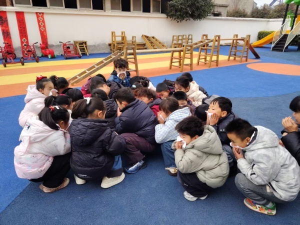 上午9时30分,随着总指挥徐迪娜园长一声令下,演练正式拉开帷幕。模拟火情警报响起后,报警联络员迅速完成“119”火警模拟拨打,广播同步发布疏散指令。各班教师立即组织幼儿用湿毛巾捂住口鼻、弯腰低姿前行,在疏散引导组和后勤保障组的有序指引下,沿着预定路线快速撤离至操场安全区域。整个疏散过程紧张有序,仅用三分钟便完成全员集结,无一人遗漏。