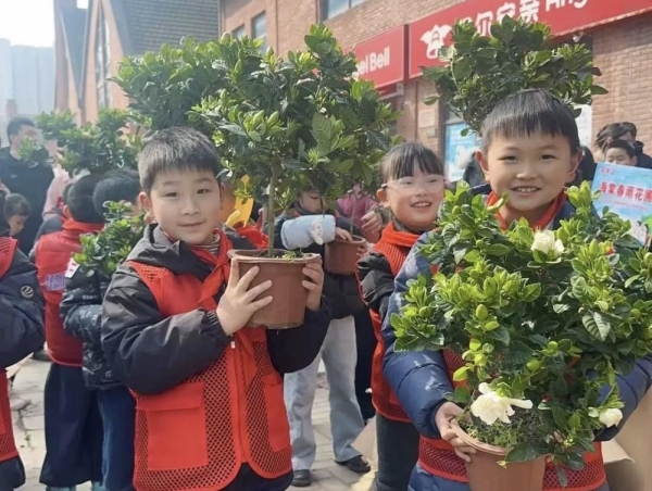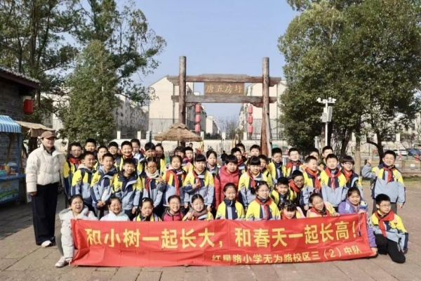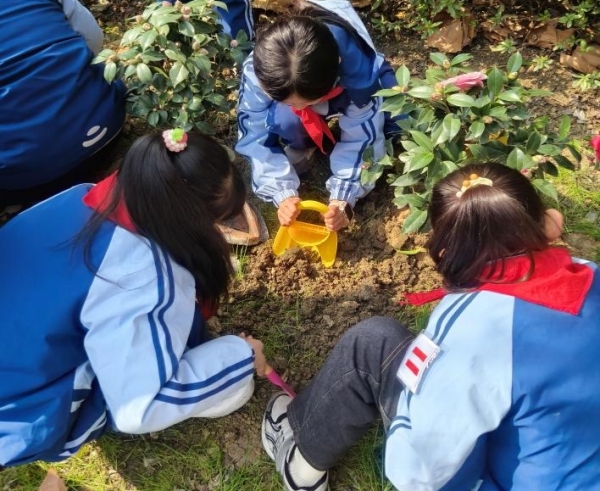 无为路校区三(2)中队开展了春游植树活动。队员们小心翼翼领取小树苗,合力挖坑、扶苗、填土、踩实,虽然辛苦却无人喊累。大家还一起抬水浇灌小树苗,一个个围着小树写下心愿牌,盼着小树苗和自己一同茁壮成长,在春天里生根发芽,为地球妈妈添上新绿。队员们亲手种下的不仅是一棵小树苗,更是一份希望与责任。