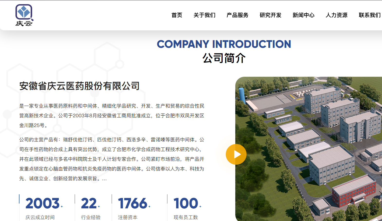 官网信息显示,安徽省庆云医药股份有限公司成立于2003年,是一家专业从事医药原料药和中间体、精细化学品研究、开发、生产和贸易的综合性民营高新技术企业。公司于2003年8月经安徽省工商局批准成立,位于合肥市双凤开发区金川路25号。公司的主营产品有:瑞舒伐他汀钙、匹伐他汀钙、西洛多辛、雷诺嗪等医药中间体。公司在手性药物的合成上具有突出优势,成立了合肥市化学合成药物工程技术研究中心。