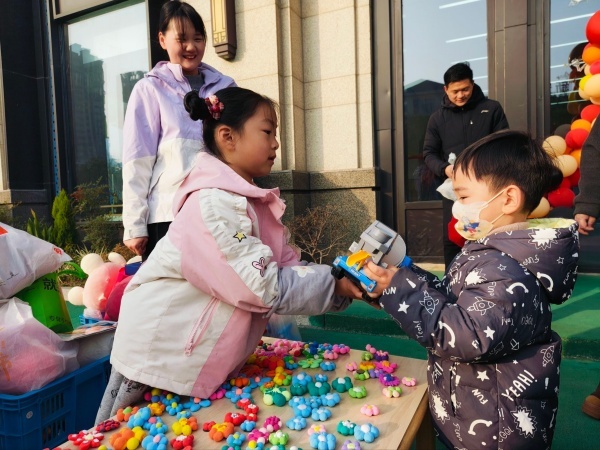 活动前期,幼儿园通过班级群发起爱心物资征集倡议,家长带领幼儿整理家中闲置完好的玩具、绘本等物品,带入幼儿园交给老师,进行集中收纳、分类消毒和标价。整个筹备过程中,孩子们在实践中真切感知“废物再利用,爱心无界”的深刻意义,在付出与分享中播撒下温暖的种子。