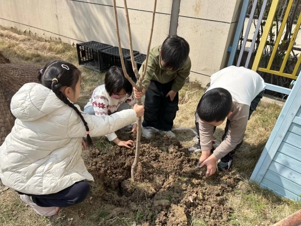 3月12日植树节当天,小班的宝贝们化身“小小播种员”,小心翼翼地将种子洒进泥土,认真盖土、轻轻浇水,眼神里满是对生命的期待;中大班幼儿则在教师的悉心协助下,亲手挖坑、扶苗、填土、踩实、浇水,一步步完成栽种,亲身感受劳动的艰辛与快乐。与此同时,孩子们围绕“爱护树木”主题发挥创意,用五彩画笔勾勒暖心标语,精心制作环保宣传牌并悬挂在树苗旁,以稚嫩的笔触传递环保理念,用小小的行动守护绿色希望,让每一棵小树苗都承载着孩子们的爱心与期盼,在春风中静静生长。