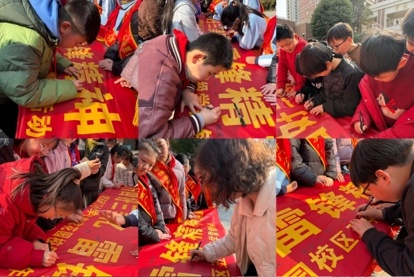 为将护绿理念转化为自觉行动,中队还组织了横幅签字与倡议宣传活动。队员们整齐列队,依次在“践行四好三美化,雷锋精神润童心”的横幅上郑重签下自己的名字,一笔一画写下责任与承诺。大家还精心布置宣传台,向过往师生发放护绿倡议书,用响亮的声音呼吁:从身边小事做起,不乱扔垃圾、不践踏草坪、不攀折花木,共同维护校园干净整洁的环境,用实际行动践行雷锋精神。