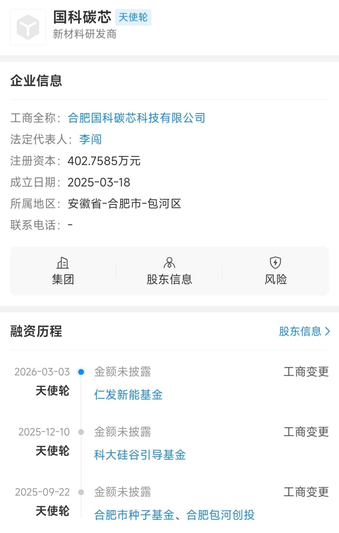合肥国科碳芯科技有限公司(下称“国科碳芯”)近日完成新一轮融资,投资方为仁发新能基金。这是公司成立一年来的第三轮融资。