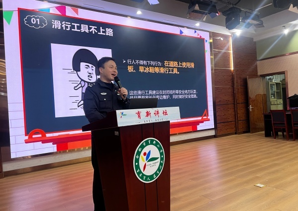 为增强学生交通安全意识,筑牢校园安全防线,3月16日,合肥市育新小学邀请学校法治辅导员周力警官进校园,为一至四年级部分学生代表开展交通安全专题宣讲。
