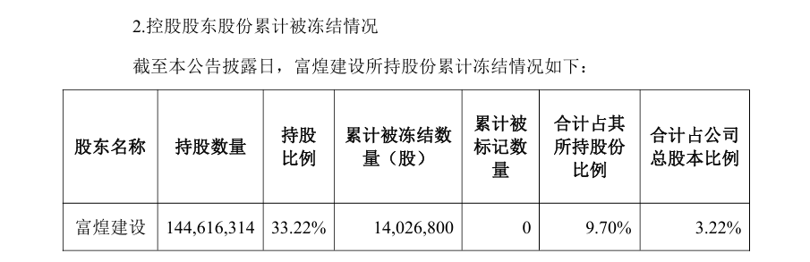 截至本公告披露日,富煌建设所持股份累计冻结情况如下:
