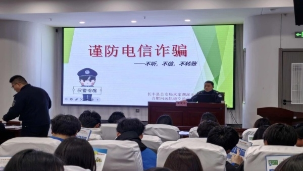 为落实“985”工作体系要求,2026年3月19日,合肥向远轨道交通学校特邀长丰县公安局水家湖派出所副所长、学校法治副校长黄夏念为师生代表带来“安全第一课”。