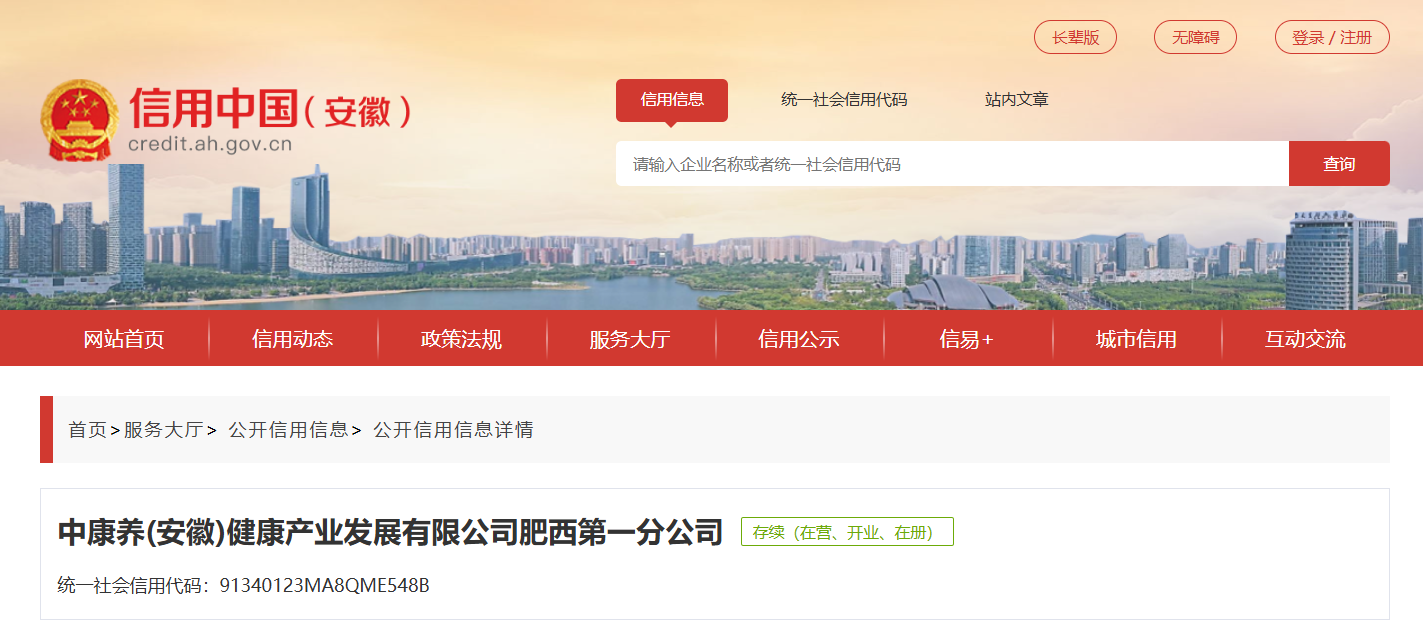 天眼查信息显示,中康养 (安徽) 健康产业发展有限公司肥西第一分公司,成立于2023年,位于安徽省合肥市,是一家以从事社会工作为主的企业。