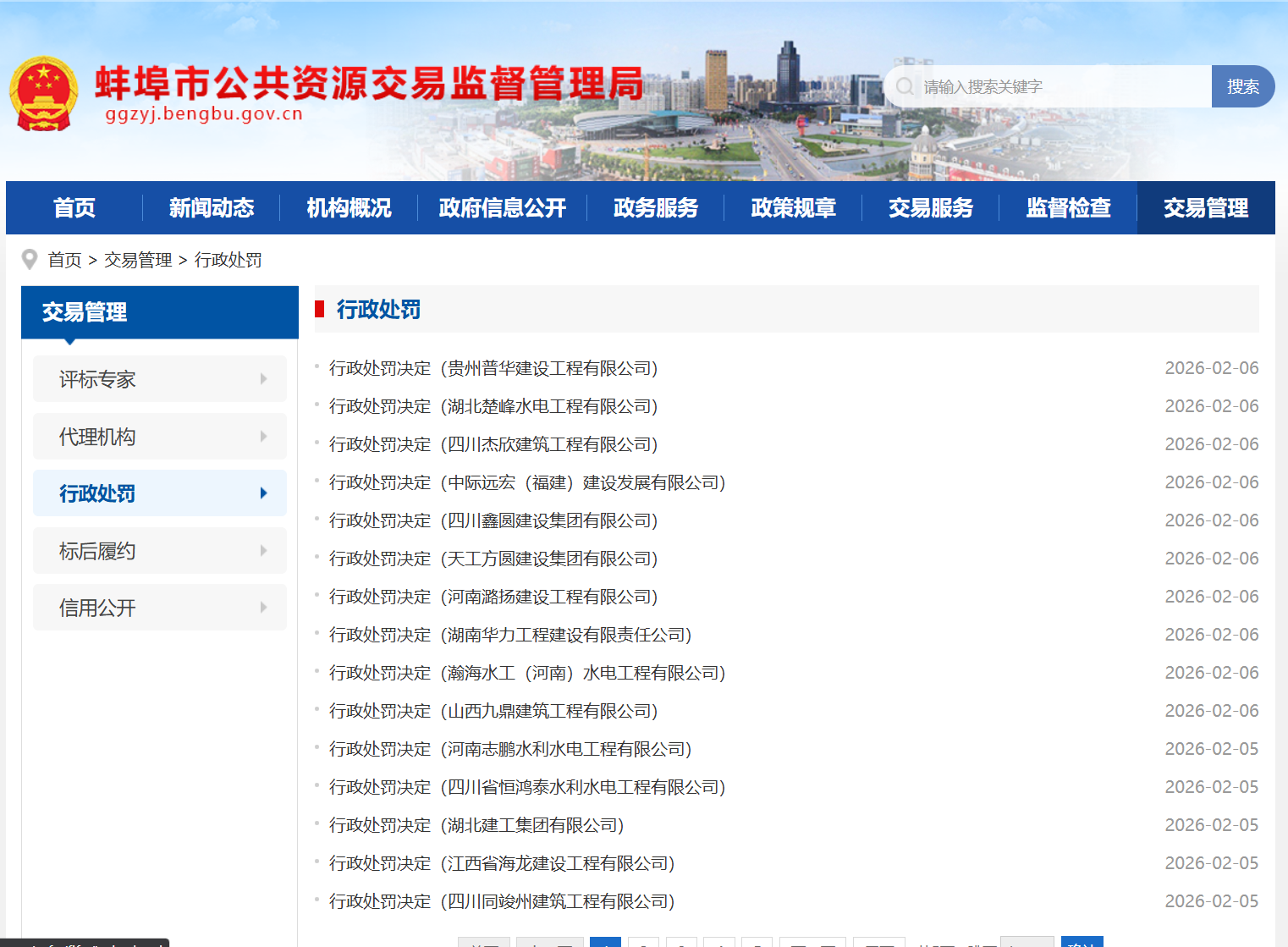 近日,据“蚌埠市公共资源交易监督管理局”公开披露行政处罚信息,因群体性投标违法案件,贵州禹鸿工程建设有限公司、福建铭瑞建设工程有限公司、江西盛远建设工程有限公司、江西闽禹建设工程有限公司、山西国图建设工程有限公司、四川同竣州建筑工程有限公司、江西省海龙建设工程有限公司、湖北建工集团有限公司(原中建建工建设有限公司)、四川省恒鸿泰水利水电工程有限公司、河南志鹏水利水电工程有限公司、山西九鼎建筑工程有限公司、瀚海水工(河南)水电工程有限公司、湖南华力工程建设有限责任公司、河南潞扬建设工程有限公司、天工方圆建设集团有限公司、四川鑫圆建设集团有限公司、中际远宏(福建)建设发展有限公司、四川杰欣建筑工程有限公司、湖北楚峰水电工程有限公司、贵州普华建设工程有限公司这20家企业被各处以482402元罚款,累计罚金达964.8万元。