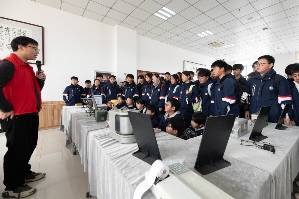 在观象台观测现场,气象工程技术人员介绍地基遥感卫星相关知识,讲解其工作原理、观测优势,以及在大气成分监测、灾害性天气预警、气候变化研究等领域的重要应用,并分享本地站点运行成果,激发同学们对航天气象科技的探索热情。随后,技术人员以通俗语言揭开人工影响天气的奥秘,围绕人工增雨、防雹、消雾等内容,介绍作业原理与设备使用,结合本地实例讲解其在缓解旱情、保障农业生产、防灾减灾中的实际作用,让大家真切体会气象科技服务民生的重要意义。