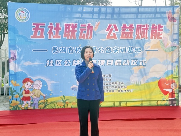 席蔚菁校长在致辞中表示,芜湖盲校作为安徽省唯一一所面向视障人士的综合型特殊教育学校,深耕中医针灸推拿专业四十余年,毕业生就业率始终保持100%。此次共建的中医推拿实训基地,既是视障学生锤炼技能的实践平台,也是社区居民享受专业公益保健服务的健康驿站,更是展示视障群体才华、传递社会关爱的温暖窗口。未来,学校将每周四、周五下午2点至4点,由专业课老师带领“萤火虫志愿者服务队”成员驻点,为居民提供公益保健按摩服务。