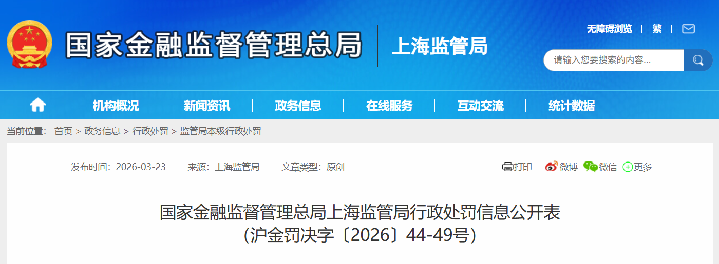 3月23日,据“国家金融监管总局上海监管局”公开披露行政处罚信息,中国建设银行股份有限公司信用卡中心及其相关责任人因多项违规被罚没合计超585万元。行政处罚决定书文号是沪金罚决字〔2026〕45号。