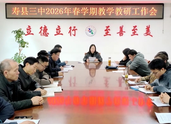 为进一步明确教学教研工作方向,提升教学质量,3月23日,寿县三中召开了2026年春学期教学教研工作会议。校长杨高虹、教科室主任薛敬淑、教导主任周庆生以及各学科教研组长、备课组长参会。会议由副校长马计生主持。