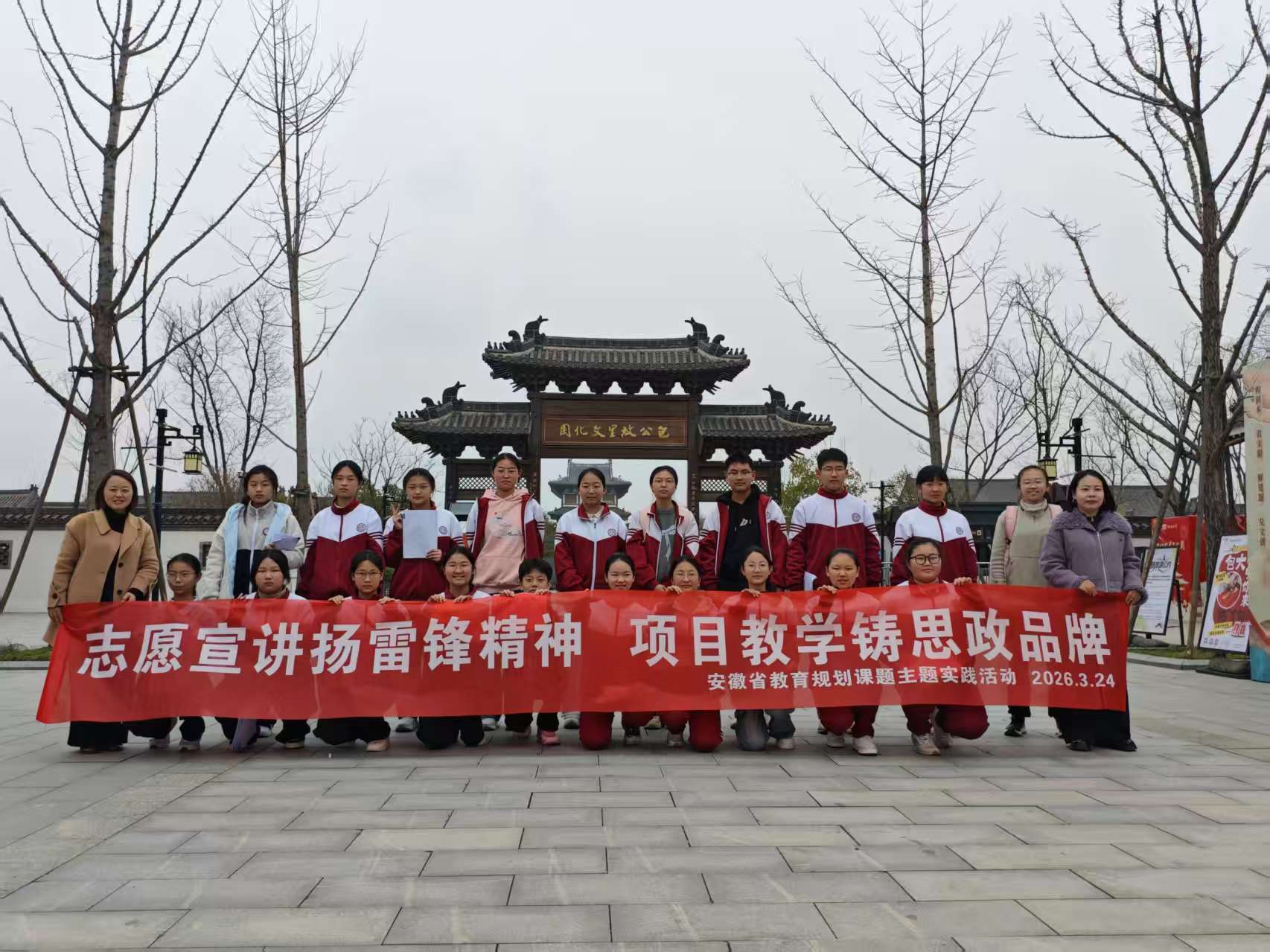 为深入推动安徽省教育规划课题《县域初中道德与法治项目式教学的实践研究》落地见效,促进项目式教学理念与雷锋精神传承、地方文化浸润有机融合,3月24日下午,课题组以2026年学雷锋月主题实践活动为契机,组织肥东三中雷锋志愿者走进肥东县包公故里文化园,开展“包公故里少年说”小小宣讲员志愿服务项目实践活动。活动以项目驱动赋能思政育人,让包公文化与志愿精神在实践探究中绽放光彩,为课题研究积累了鲜活的县域实践案例。
