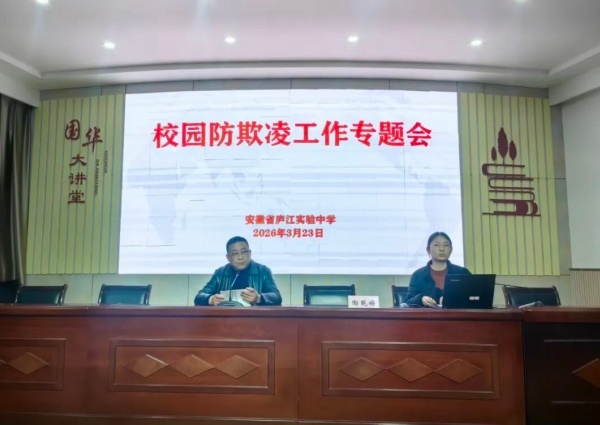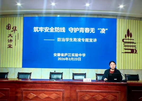 为切实加强校园安全管理,有效防范和遏制学校欺凌事件发生,3月23日下午,庐江实验中学南校区在国华大讲堂开展防治学生欺凌专题宣讲。会议由学校党委书记莫俊智主持,特邀庐江县教体局安全科副科长陶苑婷作专题宣讲,南校区190名教职工参加培训。