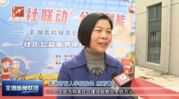 芜湖盲校校长席蔚菁在接受采访时表示:“这个项目一方面给我们学生提供一个技能锻炼、融入社会的平台;同时又能为和美社区建设出一份力。我们希望通过专业服务,让更多人看见视障群体的潜能,增进社会理解与关爱,传递互助温暖的力量。”