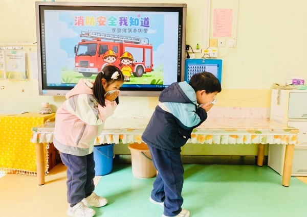 大班幼儿化身“安全小达人”,开展更具实践性的安全教育活动。针对火灾逃生场景,老师们详细讲解火灾疏散的注意事项,带领孩子们模拟弯腰捂鼻、有序撤离的简单疏散动作,孩子们认真学习、规范操作,掌握了基础的火灾逃生技能。