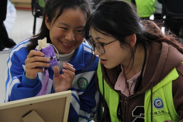 在“匠心手作”环节,志愿者们耐心协助,盲生们则在盲文标签的指引下,自主选择香料、缝制香包。一针一线间,不仅是非遗技艺的传承,更是压力的释放与心灵的抚慰。在动手实践中,同学们不仅锻炼了动手能力,更体验到了“动手疗愈心灵”的独特魅力。