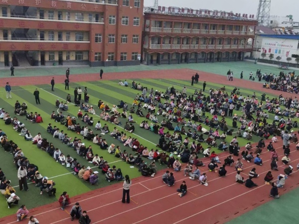 演练开始,随着警报声响起,师生迅速进入应急状态。各班班主任和任课教师组织学生按照预定路线,有序从教学楼撤离至操场安全区域。各楼梯口、转角处均有专人值守,确保疏散过程安全顺畅。到达操场后,各班立即清点人数并逐级上报。
