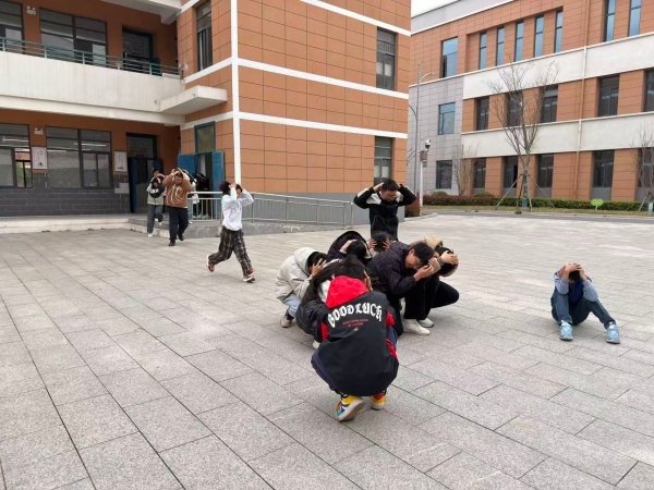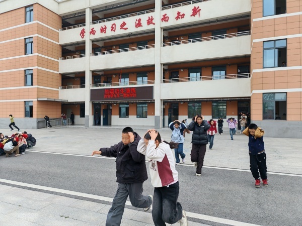 演练前,学校安全办制定了详细的演练方案,各班班主任也提前给学生讲述了地震逃生知识,特别强调了在疏散时,要不推挤,严肃对待,在老师的引导和统一指挥下有序疏散。上午9点32分,原本书声琅琅的校园突然响起了警报声。任课教师迅速冲到走廊、楼道组织大家有序撤离。学生们迅速用手抱住头部,快速有序地沿着事先拟定的应急逃生路线疏散逃生。正在户外上体育课的班级,也在任课教师组织下疏散至安全地带。全校十个班级在一分钟之内全部安全疏散到学校广场空旷地带。