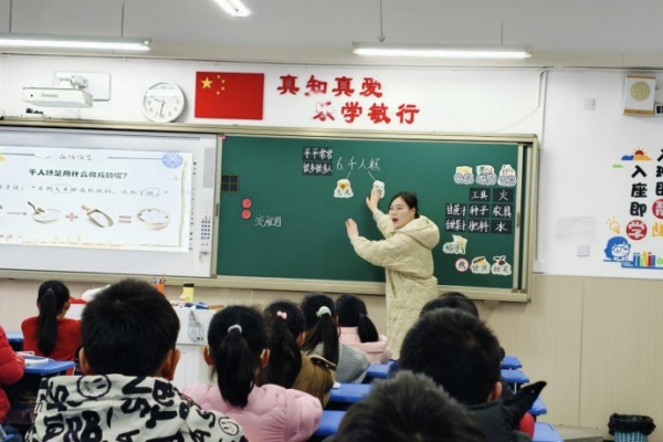 张浩然老师执教《千人糕》,以“为什么叫千人糕”这一问题导入,引导学生回顾上节课所学。教学中,他聚焦“米糕的制作过程”,通过小组合作探究,让学生从文中提取信息,梳理出从稻谷种植到米糕上市所经历的各个环节。张老师巧妙借助图示板贴,与学生共同完成“千人糕诞生记”的流程图,让“千人付出”这一抽象概念变得具体可感。在拓展环节,他引导学生寻找生活中的“千人物品”,如衣服、书本等,让学生深刻体会到任何物品的背后都凝聚着无数人的劳动,将珍惜劳动成果的意识根植于心。