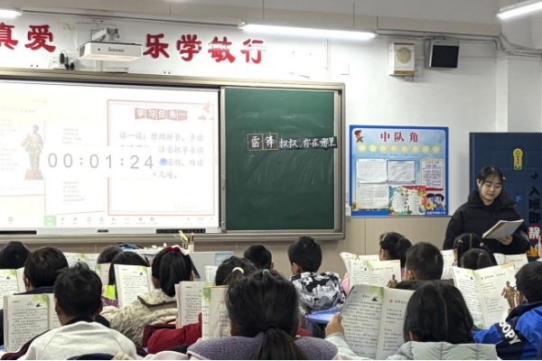 陈雨潇老师执教《雷锋叔叔,你在哪里》,以歌曲《学习雷锋好榜样》导入,营造了温暖感人的课堂氛围。教学中,她将识字与初步感知作为重点,引导学生借助拼音自由朗读,圈画出“小溪、小路、雷锋叔叔”等关键词。识字环节,陈老师采用随文识字的方法,在“沿着长长的小溪”“踏着泥泞的小路”等语境中,引导学生识记“曾、蒙、泞、踏”等生字。她还通过范读、引读等方式,指导学生读好问句的语气,让学生在朗读中感知“寻找雷锋叔叔”这一线索。