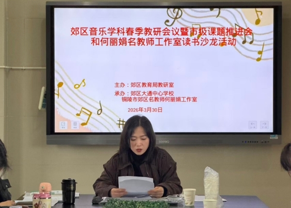 3月30日上午,铜陵市郊区音乐学科春季教研会议、市级课题推进会暨何丽娟名教师工作室读书沙龙活动在大通中心学校顺利举行。全区中小学音乐教师、名师工作室成员及课题组成员齐聚一堂,共促专业成长。
