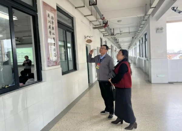 3月26日下午,庐阳区第十一责任区专职督学张羽莅临合肥市南国花园小学和煦、滨水两校区,以师德师风建设为核心开展专项督导工作,同步检查开学各项工作规范落实情况,副校长黄华清全程陪同。