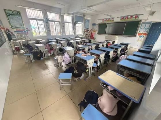 演练中,伴随着第一声警报,各班学生在授课教师的引导下,迅速在课桌旁或墙角进行紧急避险,随后在第二遍警报响起后,按预定路线,快速、有序地撤离到操场等安全区域。整个疏散过程紧张、高效,用时1分27秒,达到预期效果和目标。
