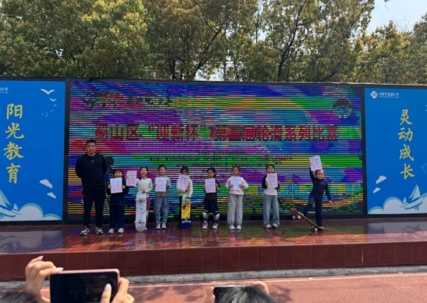 滑板个人赛场上,刘心玥、李思远、金浩煊、晏然、孟煜辰、刘星宇、张易弦七位同学各展所长,稳定发挥,斩获一等奖、二等奖、三等奖等优异成绩。