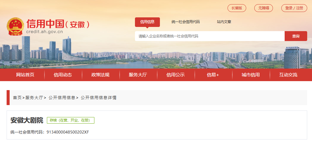 近日,据“信用安徽”公开披露行政处罚信息,因涉嫌侵犯注册商标专用权,安徽大剧院被处以罚款3.3761万元。行政处罚决定书文号是合市监处罚﹝2026﹞44号。