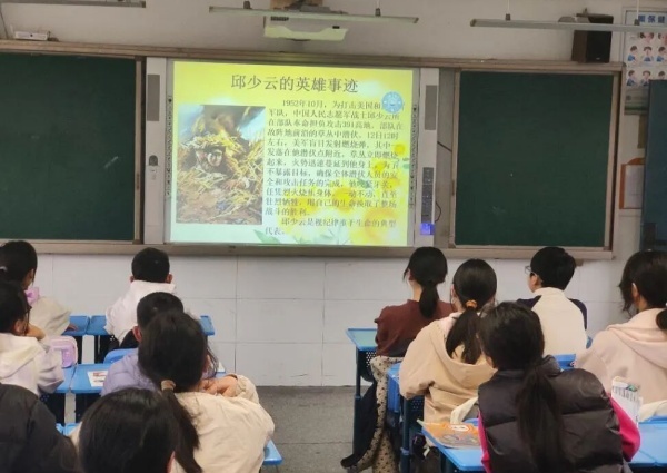 下午,各班级开展“缅怀革命先烈 賡续红色血脉”主题班队会。课堂上,通过观看视频、讲述安徽籍英烈故事、组织“我心中的英雄”分享会等形式,重温峥嵘岁月。队员们踊跃发言,有的讲述家乡烈士的英勇事迹,有的分享从红色故事中汲取的力量,有的亲手制作小白花,写下对英烈的寄语,将哀思与敬意融入指尖。