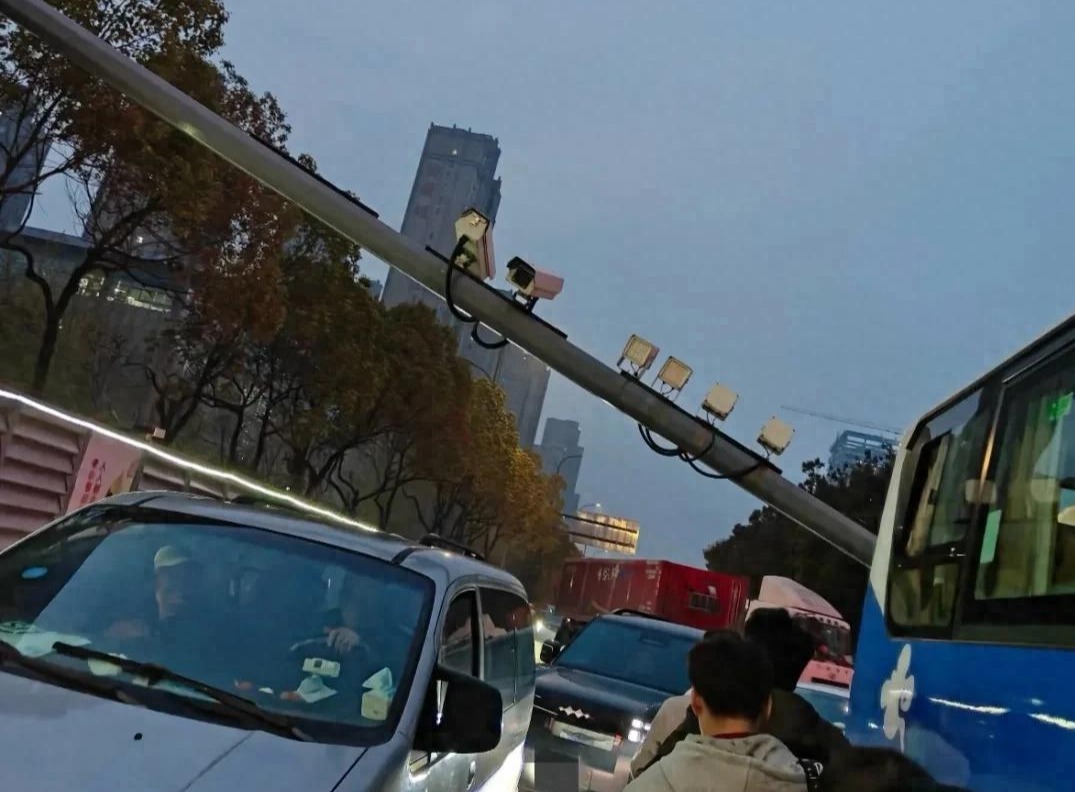 3月31日晚,有网友反映,安徽合肥市高新区习友路一处路段,一根电子警察监控杆突然倾倒,擦着一辆正在等红灯的客车尾部砸向地面,险些砸中车辆,所幸车内人员无恙。