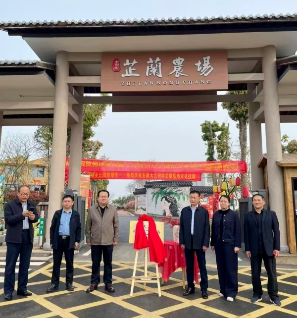 铜陵市教体局局长杨贤招,安徽大江教育集团党委书记、董事长杨益,宿松县教育局局长黄威,佐坝镇党委书记苏琦,芷兰农场主理人王建国等领导嘉宾共同出席并为基地揭牌。