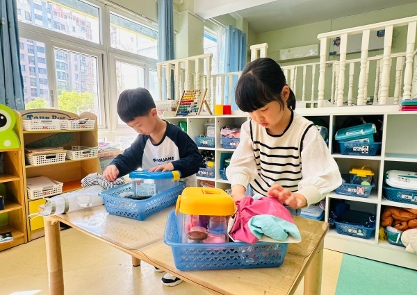 大班孩子们在老师的带领下,认真整理个人物品框,让物品摆放整洁有序;还走进园区角落,仔细清理花草丛中的垃圾。在亲身劳动中,幼儿不仅养成了整洁有序、爱护环境的良好习惯,更树立了责任意识,主动争做健康生活的小使者,用实际行动践行卫生健康理念。