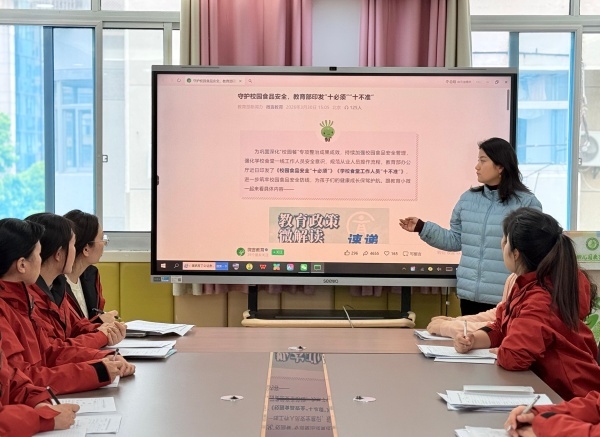为全面筑牢校园食品安全防线,规范保育工作操作流程,切实保障在园幼儿饮食健康,4月8日下午,合肥市安庆路幼儿园早托中心组织全体教职工,开展校园食品安全专项保育培训,重点学习教育部印发的校园食品安全“十必须”与学校食堂工作人员“十不准”相关要求。